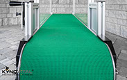 Natürliches Gangbild durch griffigen durchgängigen gummierten Laufbelag, da der Hund keine Krallen ausfährt